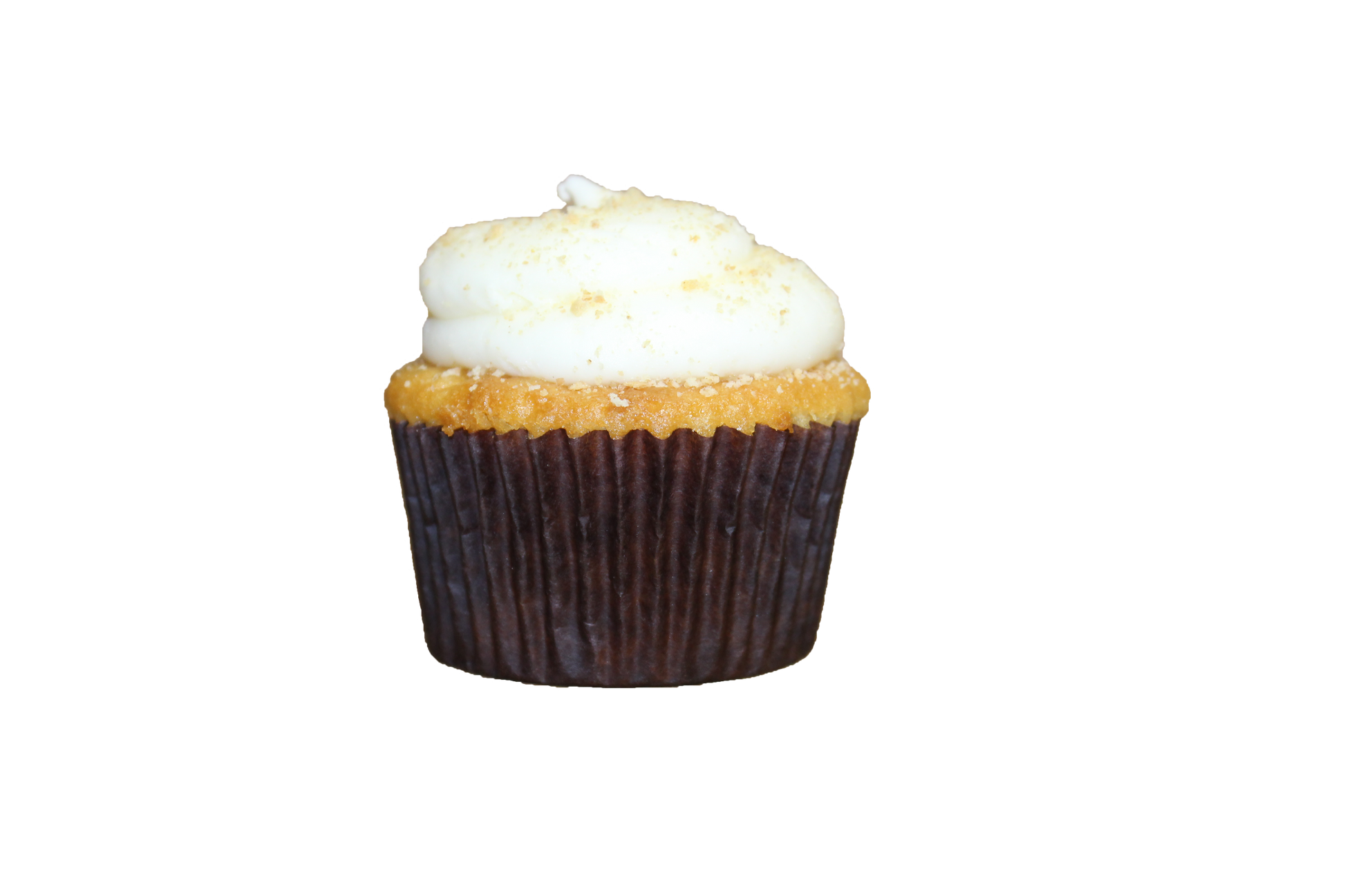 Vanilla cupcake injected with lemon filling, topped with a citrus cream cheese frosting and brown sugar pie crumbs.